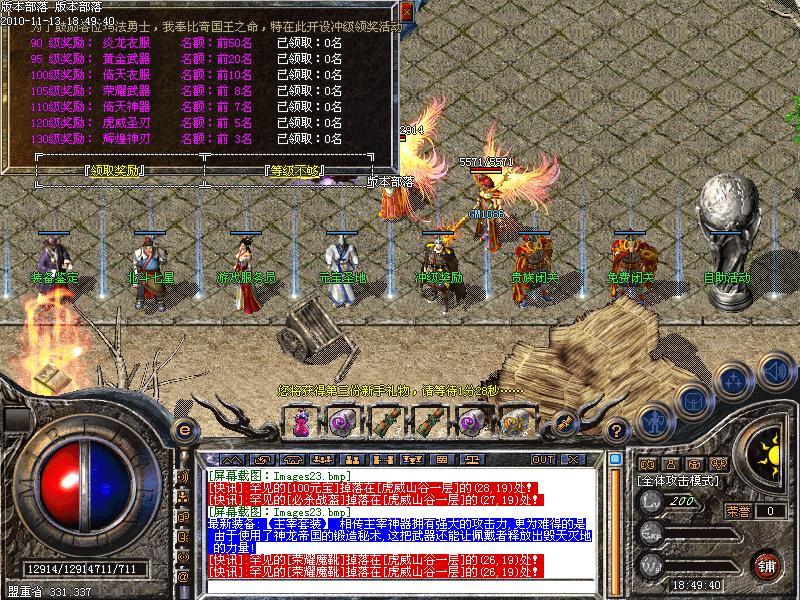 火龙可爆出:荣耀,虎威,必杀,主宰,传奇等装备和元宝