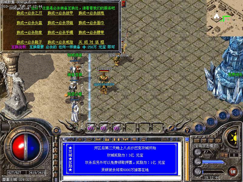 *╔─┬───────────────────────────╗│★│ 开区后第二天晚上八点沙巴克攻城开始 ││攻│ ││城│ 攻城奖励为:3亿 元宝 ││★│ ││奖│ 攻杀后另外可以免费领取押票,奖励为:1亿 元宝 ││励│ ││★│ 贡银被杀将有6000万掉落在地 │╚─┴───────────────────────────╝
