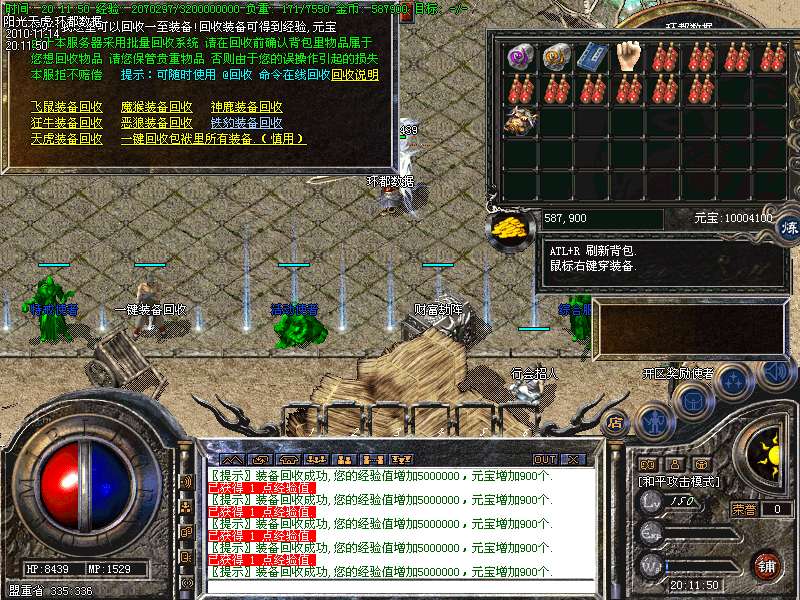 【更新】财富劫阵,BOSS爆出财富神石可以启动财富阵,启动的同时可以随机获得元宝!!满188层土药将会出现大量的元宝!!具体请查看土城财富劫阵NPC!!