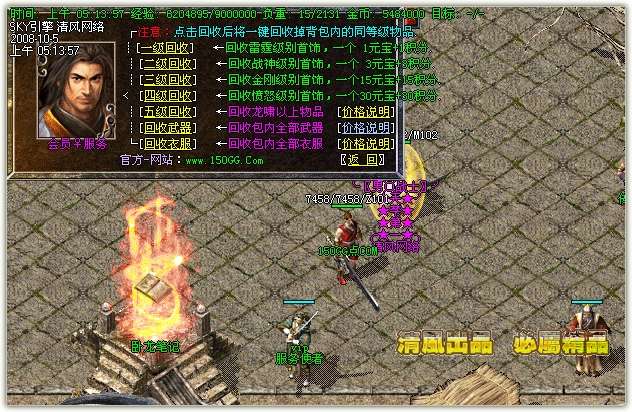 1.回收装备、雷霆以上的装备都可以回收,回收装备还可以获得大量元宝及积分、积分可以到富豪排行榜哪里兑换奖品,单件最高可以收回到2000元宝和2000积分