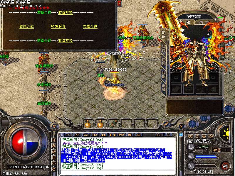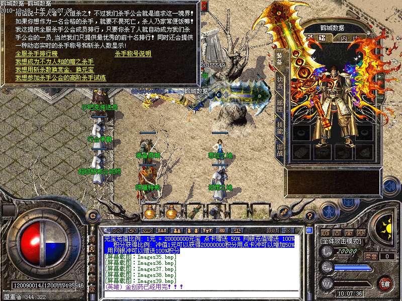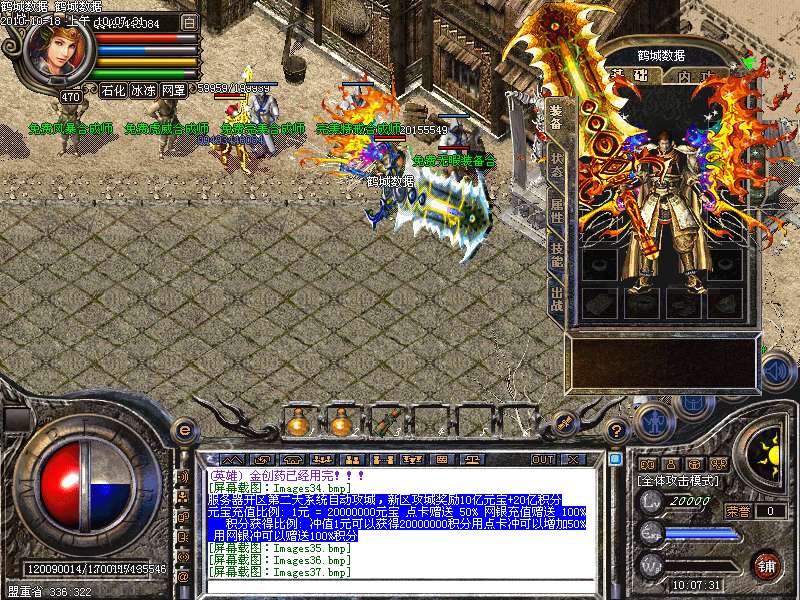 元宝充值比例: 1元 = 20000000元宝 点卡赠送 50% 网银充值赠送 100% 积分获得比例: 冲值1元可以获得20000000积分用点卡冲可以增加50%用网银冲可以赠送100%积分