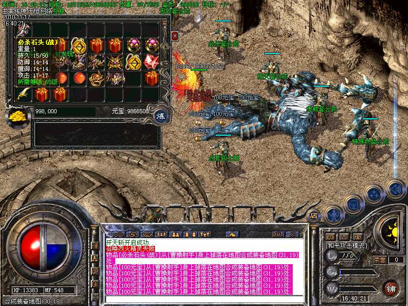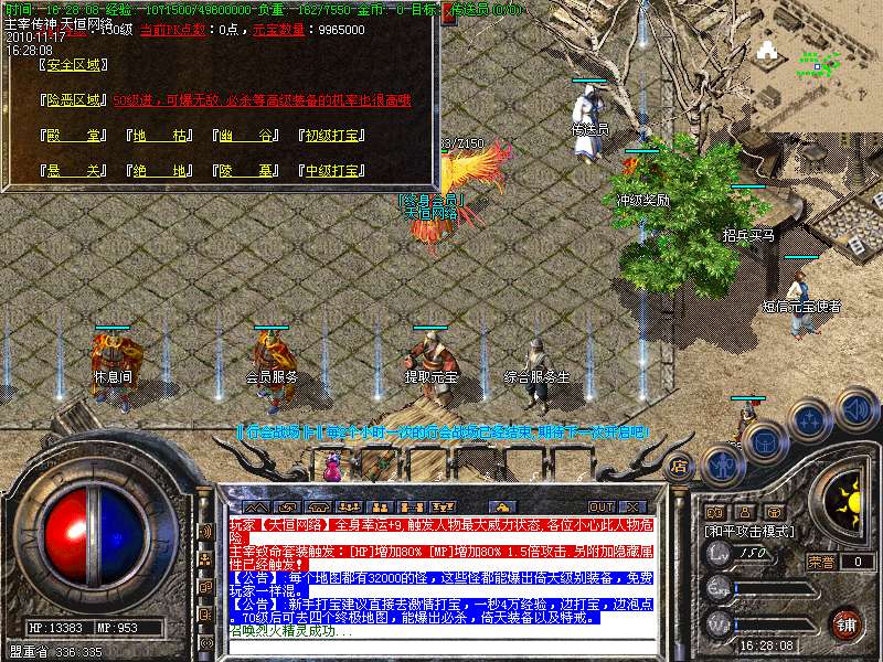 新人上线送幸运+9武器,无须打怪,直接进入泡点休息间,瞬间65级,避免打出装备带不上的尴尬