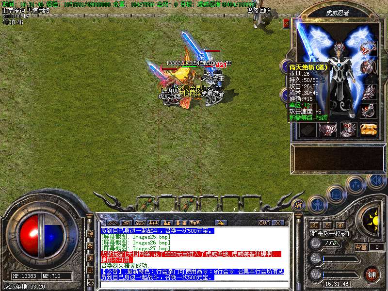 新加入虎威圣地和主宰沙场,小怪也可以轻松爆倚天、幸运之石,BOSS爆所有装备非常之高。