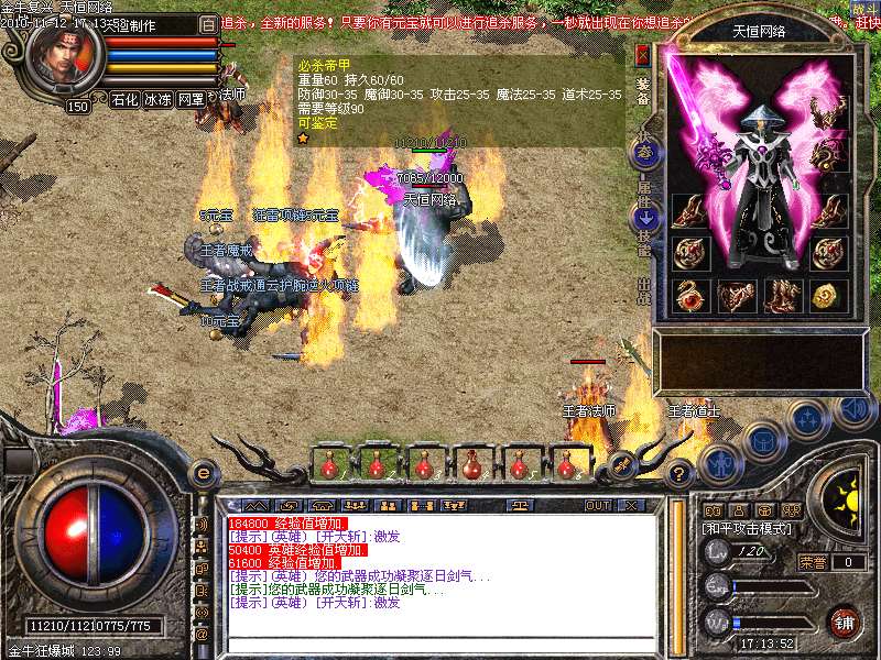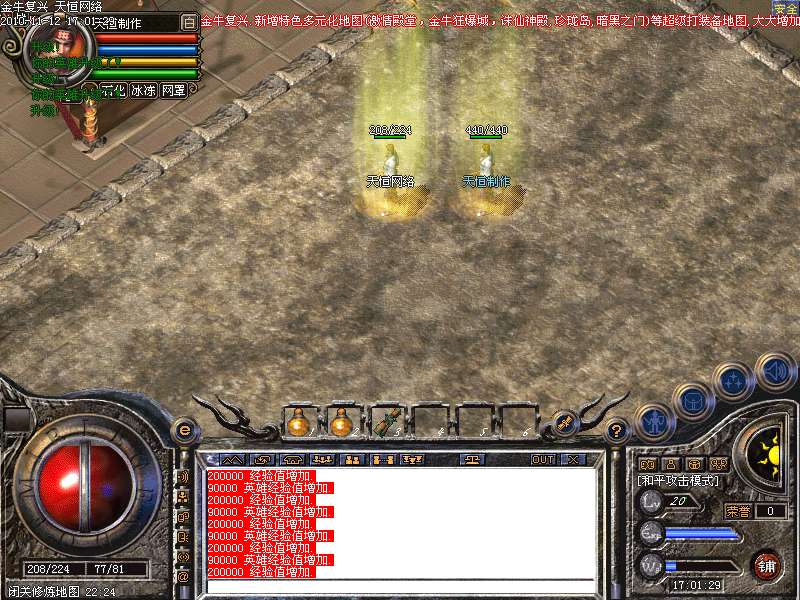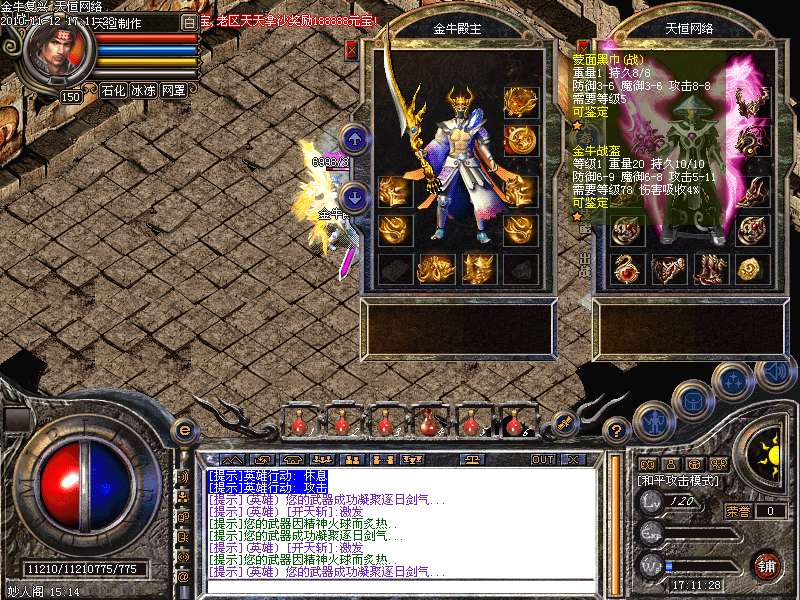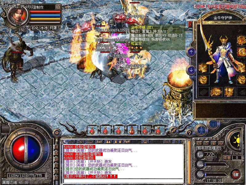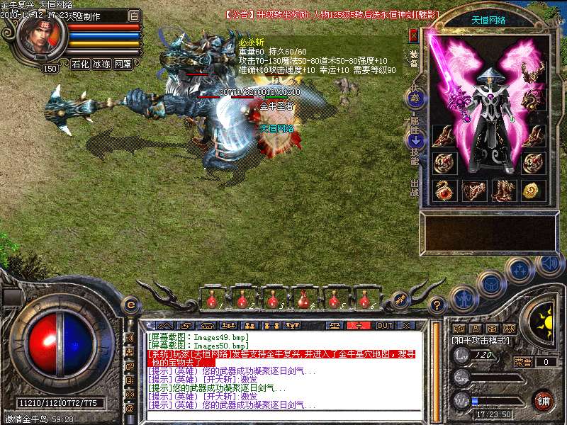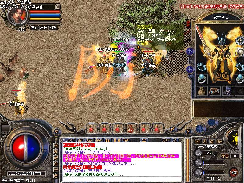 1.版本和盛大同步去掉内功和连击,将1.95和1.85综合而成的无盾,无内功,无连击.所有装备靠打和合成,就金牛神刃和金牛衣服不爆其他全部装备都爆出,只要肯努力就有终级!