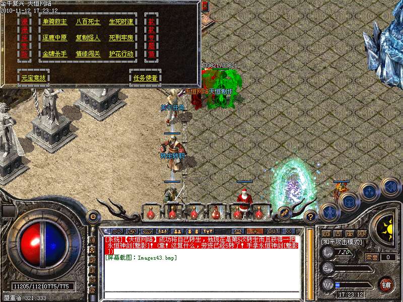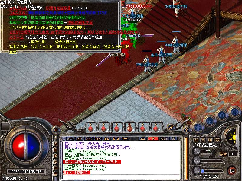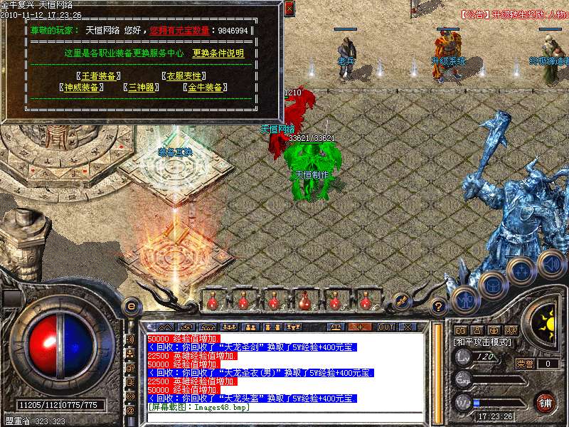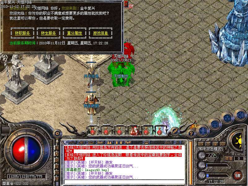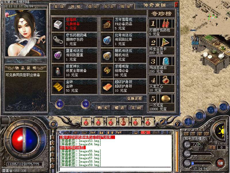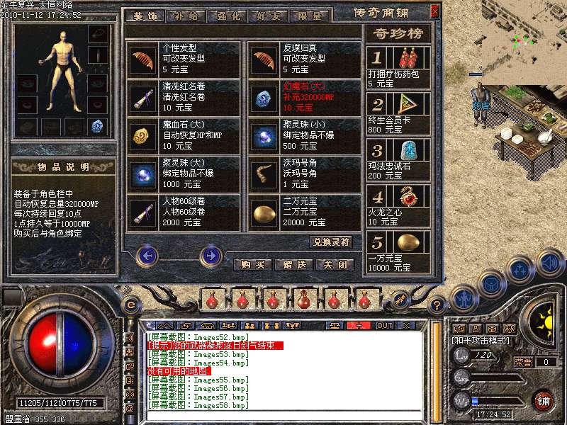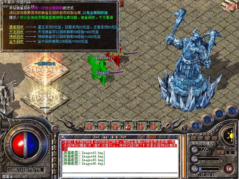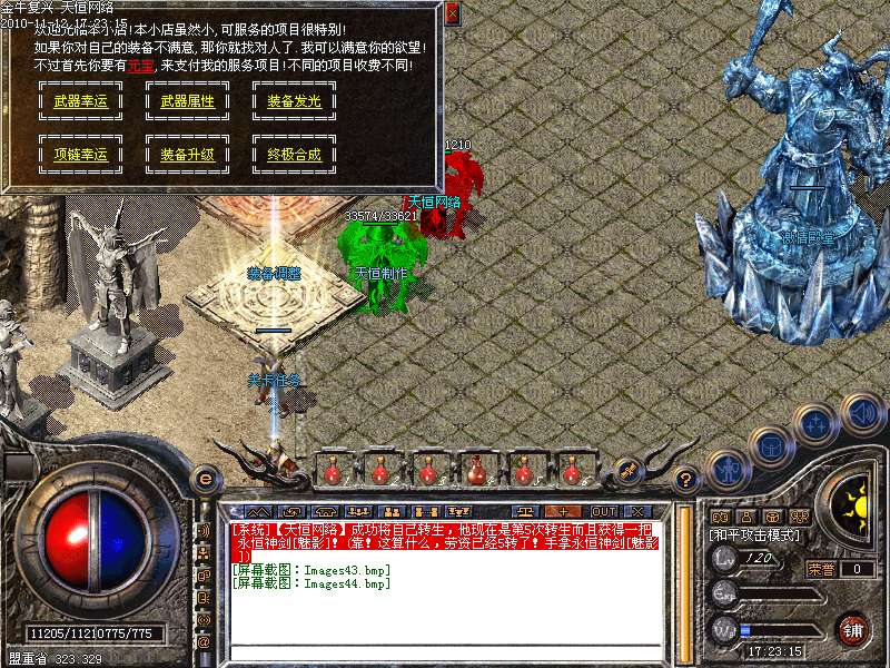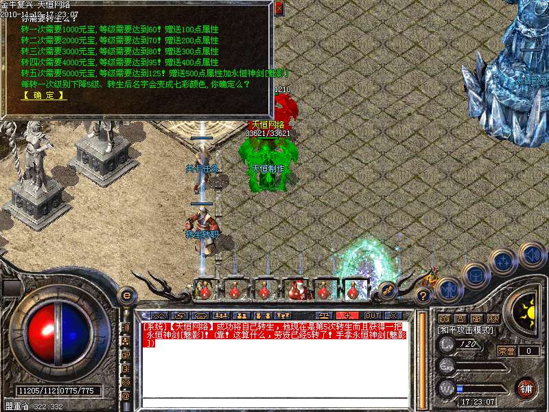 4.神话新加十转轮回系统,美丽的七彩封号增添更多的游戏乐趣!装备调整师(胖子老板)让您的装备得到想要的升级!综合服务师功能强大,服务多多!