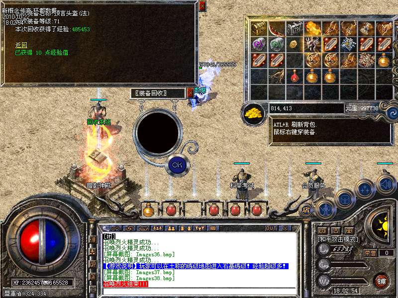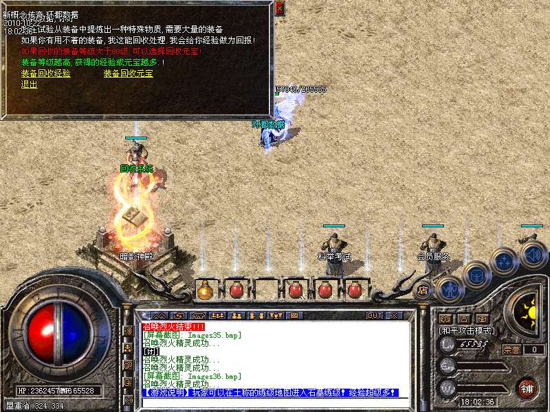 【回收系统】每一件装备都来之不易,对于辛苦获得的装备,却不适合自己,我们采用了独家设计的完美回收系统,除个别特殊装备外,所有装备,都可以交由系统回收,并获得丰厚的经验奖励。回收的装备等级越高,奖励的经验就越多。通过装备回收,能更快更轻松升级!