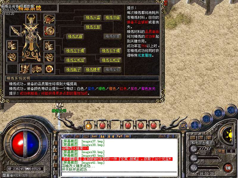【装备精炼系统】我们一直在追求更强,那么,在都拥有差不多的同等装备下,装备精炼能将你的装备轻易提升到另一个高度,拥有一身紫色传奇级装备,那么走在传奇的每一个角落,都会受到全服玩家追逐欣赏,羡慕眼红的目光!