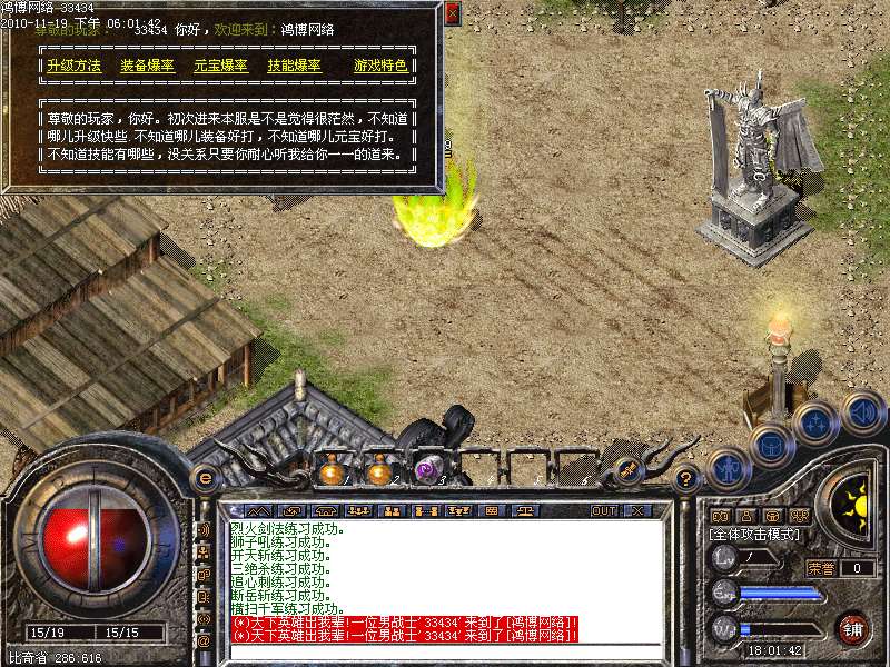 1.英雄升级后自动学习所有连击技能、升级自动打通全部经络系统★★★★★★