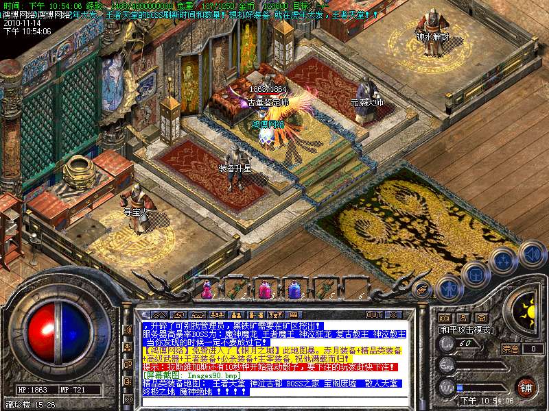 特别地图:王者天堂为打宝天堂,每天16点开放.此地图任何大小怪物都可以有机率暴出赤月类装备和精品首饰、终极武器!