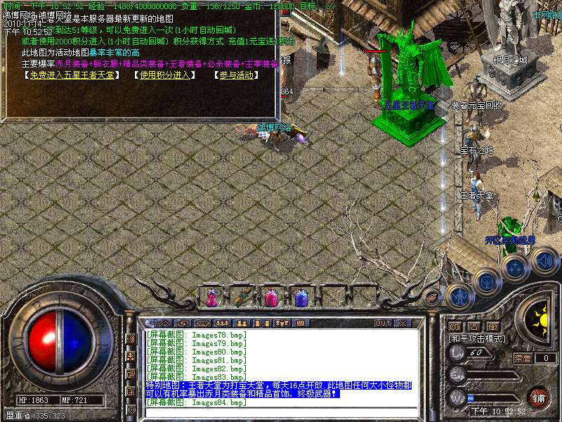 特别地图:王者天堂为打宝天堂,每天16点开放.此地图任何大小怪物都可以有机率暴出赤月类装备和精品首饰、终极武器!