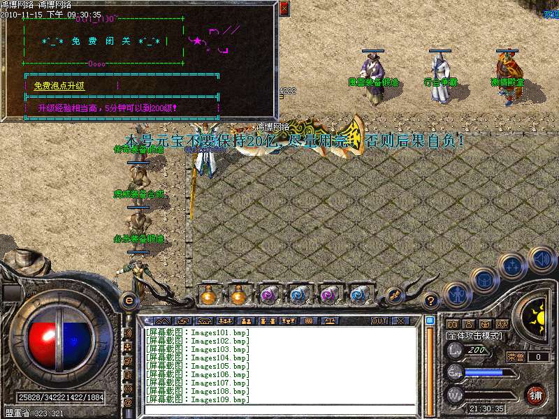欢迎进入<$SERVERNAME>,本服为无GM管理模式,冲值元宝请到网站冲值!!!绝对好玩不变态,2011年风云连击版!!!