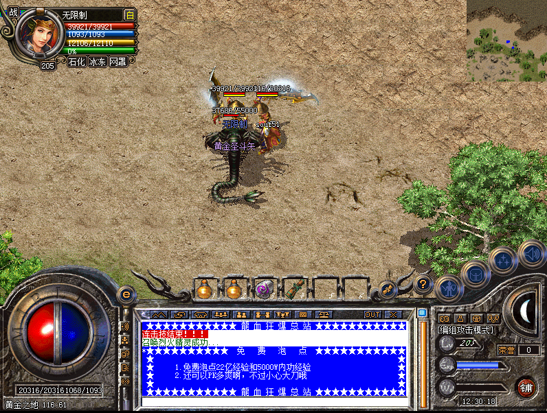 [特色]:人物上线连击技能全满.血脉全部打通. 爽爽