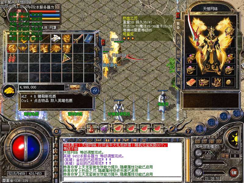 2.打装备-----最新地图金牛套装、炎龙套装、荣耀套装、暴率爽歪歪。