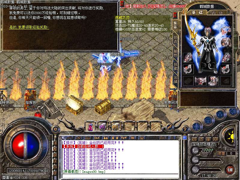 升级奖励:凡是升级到95级自动赠送[金牛神刃⑤]一把,升级到105级自动赠送[复活戒指]一枚,升级到115级自动赠送[金牛战甲⑦]一件,升级到120级自动赠送[终极金牛神刃]一把.升级到125级自动赠送绿魔麻痹一枚,升级到130级自动赠送终极衣服一件