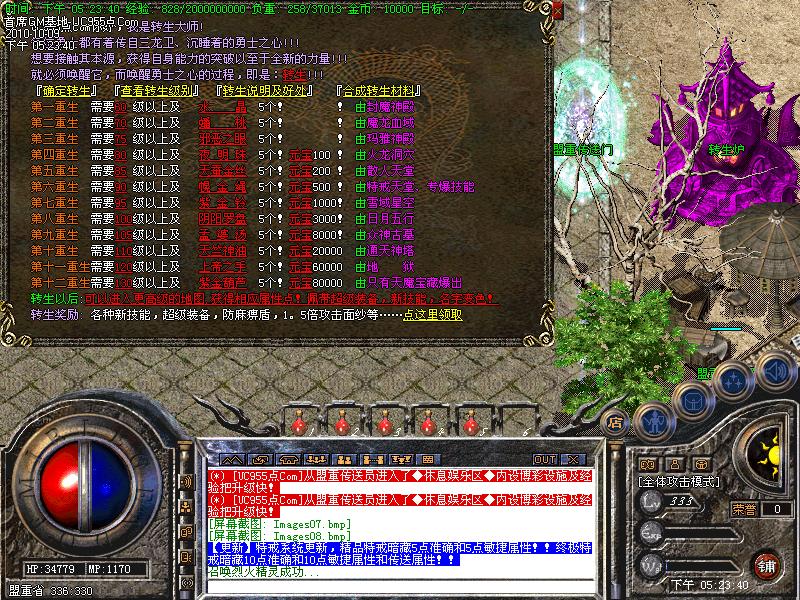 【更新】更新转生系统,1-12转,转生后每转都可以获得相应属性点,另外还设置转生奖励,4-12转可以分别领取各种技能书及超级装备,防麻痹盾牌,1。5倍力量面纱等!!具体土城转生炉处了解!