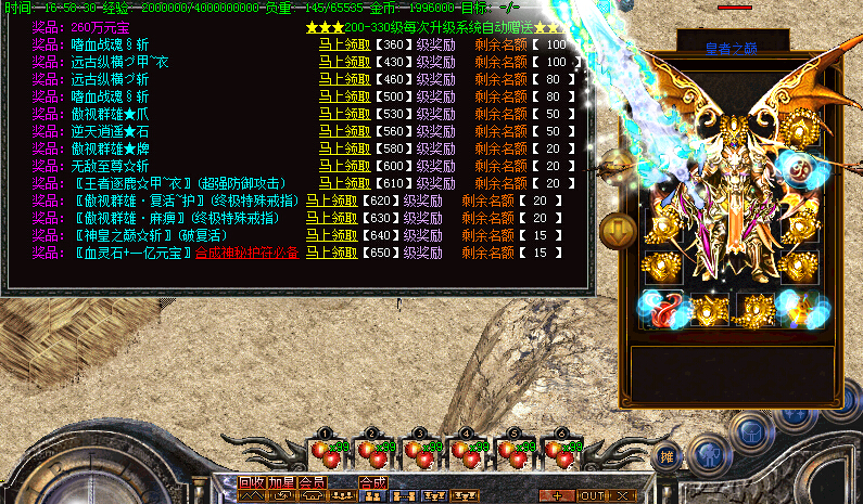 游戏介绍③ >> 大小怪物都可以暴元宝,奖卷,龙珠,人民币,刮刮彩,物品丰富,不会乏味,只要你肯花时间不花钱照样当爷!