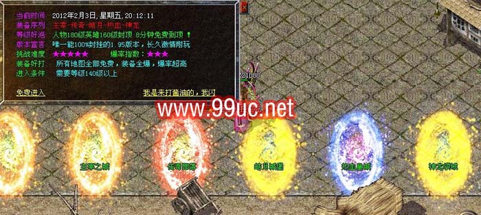 正在开区2012独家v1.95盛大神龙无内功合击版<神龙领域><热血皇城><传奇部落>