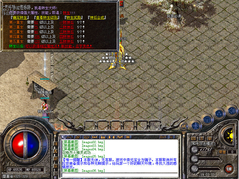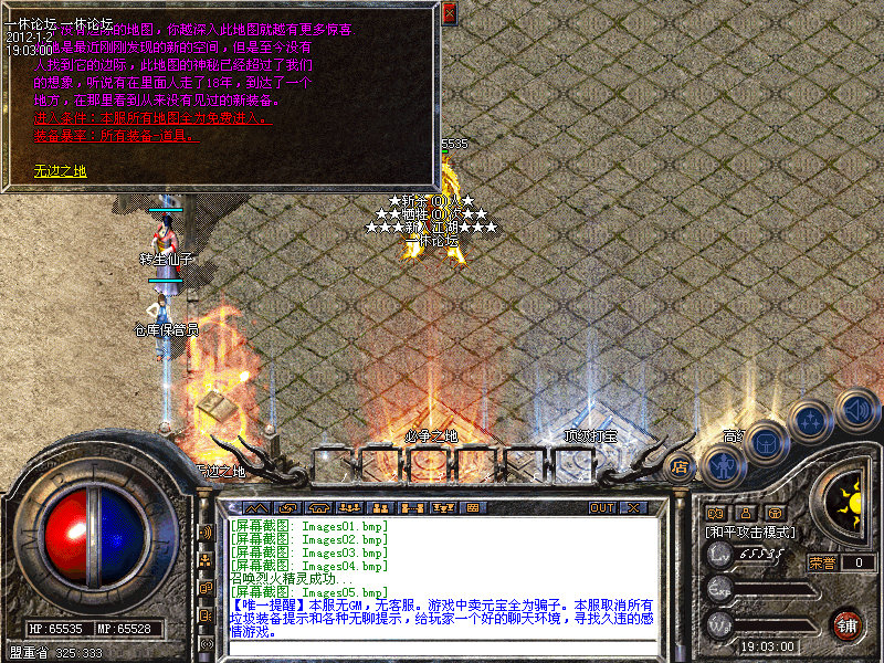【新增招魂殿】:三职业均可以在那里召唤死去的怪物的尸体当作宝宝,威力强悍无比,宝宝种类较多。。。
