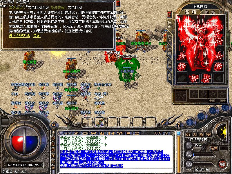 元宝充值比例: 1元 = 20000000元宝 点卡赠送 50% 网银充值赠送 100% 积分获得比例: 冲值1元可以获得20000000积分用点卡冲可以增加50%用网银冲可以赠送100%积分