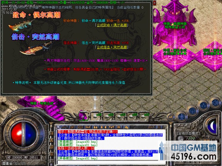 【上古神器】本服无元素属性,唯一拥有高元素的武器为两大神器。拥有两大神器可以直接免费合成本服终极神器。