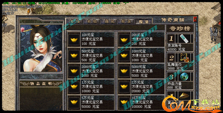 传奇服务端名称:GM下载站论坛1.99必杀乱舞元素版,狐月山庄,极限之地,广寒宫,桑拿泡点[HeroM2]