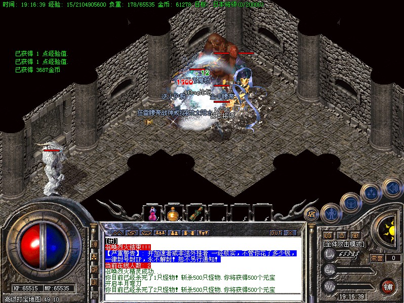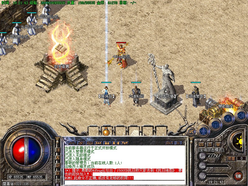 荣誉地狱,刷新全服所有高级BOSS,刷新快,需要元宝进入、二级雇佣兵可免费进入.此地为必争重地.刷新快,爆率高!