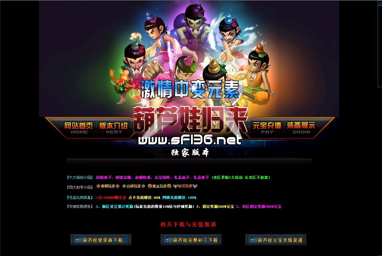 【葫芦娃宗旨】让我们回归绿色传奇.稳定耐玩的OL游戏.我们会更加的努力更新更多的活动与地图.相信我们葫芦娃.兄弟们加油
