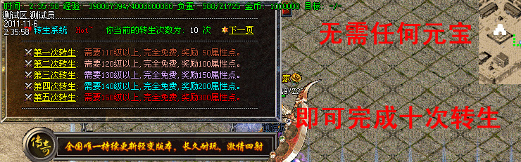 【更新】更新转生系统,1-10转,完全免费,转生后每转都可以获得相应属性点.详情请看转生仙子!