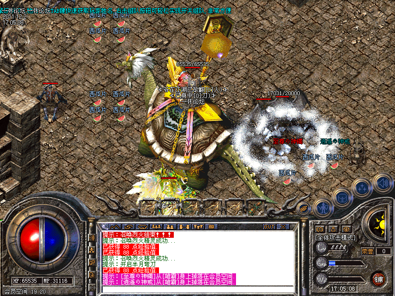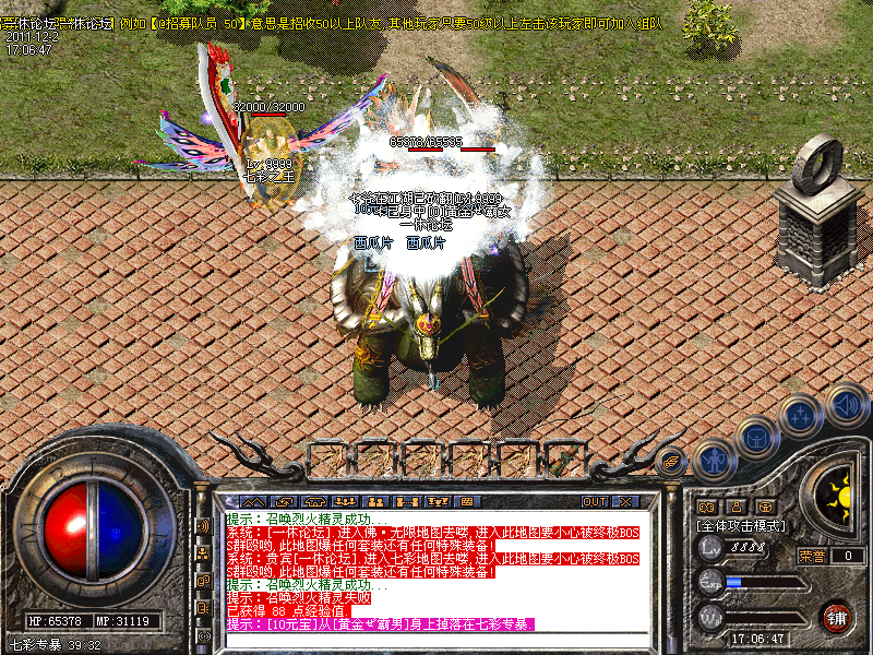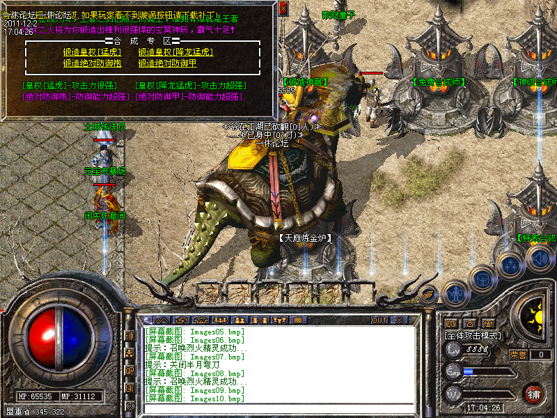60级道士召唤神兽自动转换成召唤白虎,防御攻击速度都有一定提高。官方网站bbs.1x.la