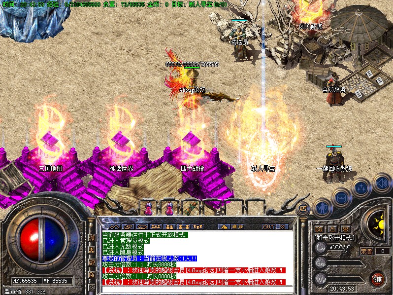 服务器新增加终极BOSS,必杀圣者,是服务器指定暴武器装备BOSS,主要刷新地:夷陵之战,官渡之战,白帝城,会员地
