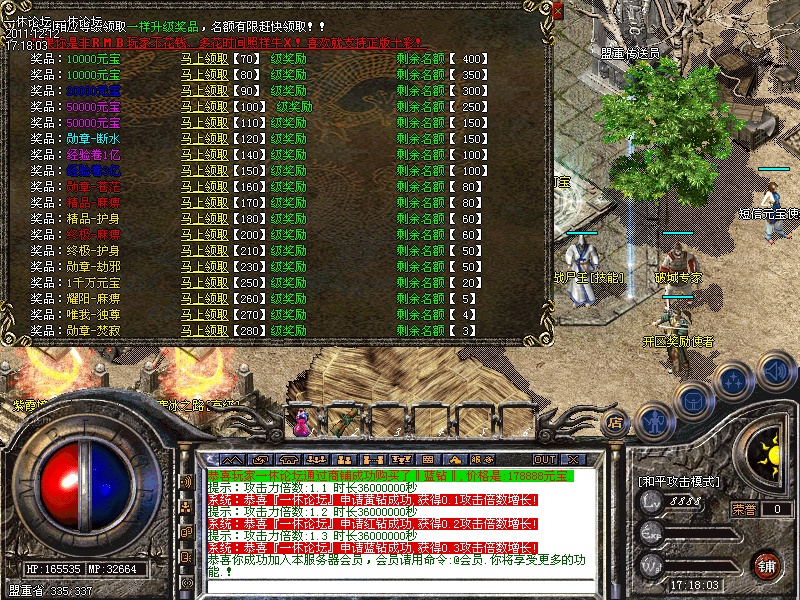 【更新】杀鸡活动,抢夺元宝树,屠杀金刚龙,系列活动必爆100W元宝.经验卷.转生物品.自行体验