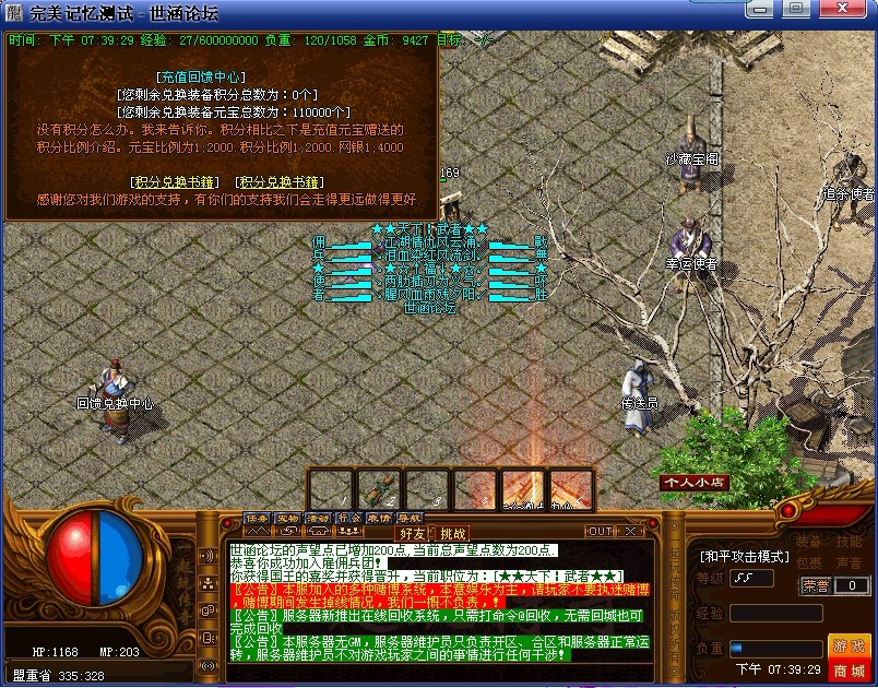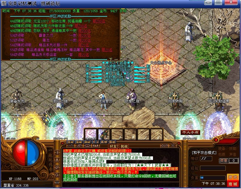 〖公告〗本服升级特别介绍.免费泡点玩家可以泡到52级就不能进入了.增加了积分泡点。积分是怎么来的呢?就是充值元宝比例1.2000.那么积分同元宝比例一样.最高等级为80级。60级以后等级经验为4亿是50级同等经验。.增加了系统织自动奖励.53级奖励黄金精品战甲1件.55级奖励黄金之刃一把.58级奖励FBI防御神衣 60级奖励FBI神斩一把
