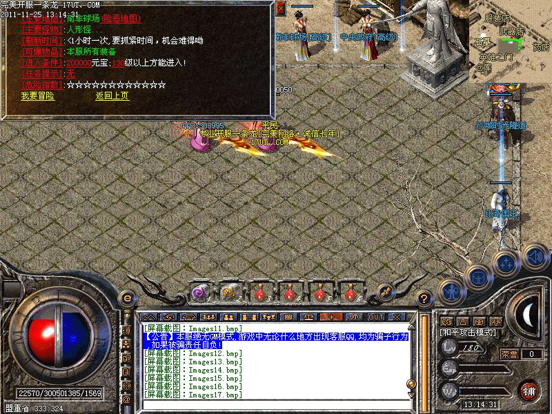[南非球场] 此地图可爆出传奇系列装备,进入需要元宝20W个.需要等级130级.