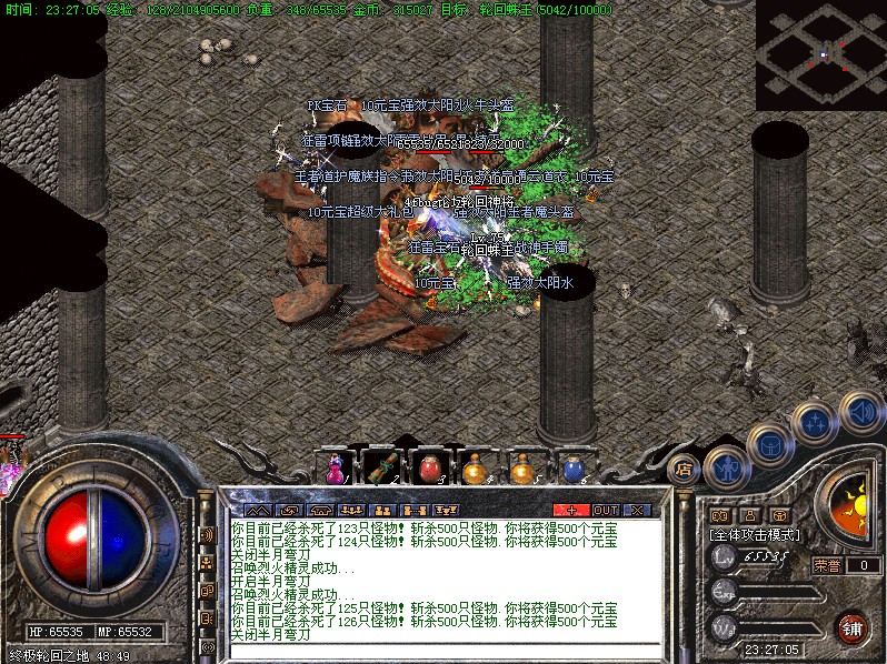 四.【特别地图】六道轮回,共七层,每进一层难度不通,闯过六层可以领取200元宝奖励,或者进入终极轮回之地挑战终极BOSS,此地图暴率非常高!