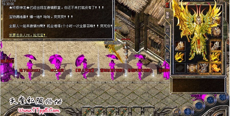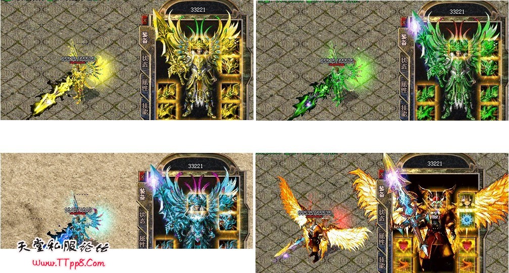 【地图介绍】:烟花秘穴,盘古地图,玛雅神殿,六道轮回,魔龙血域,六道轮回,神之地狱,雪域冰宫,散人天堂,永恒之塔,传奇庄园,地下城,万年废墟,,兽族部落,天威山庄等所有地图均有不同BOOS刷出!
