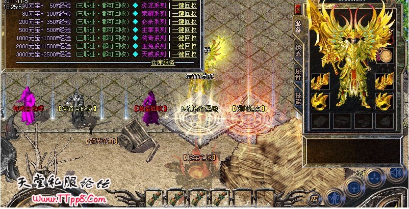 【特色活动】:二小时特戒神殿刷特戒使者几乎有机会爆特戒、60分钟土药刷新一棵摇钱树,每次暴2000以上元宝,20分钟土药刷新两大怪物,带有丰富宝藏!