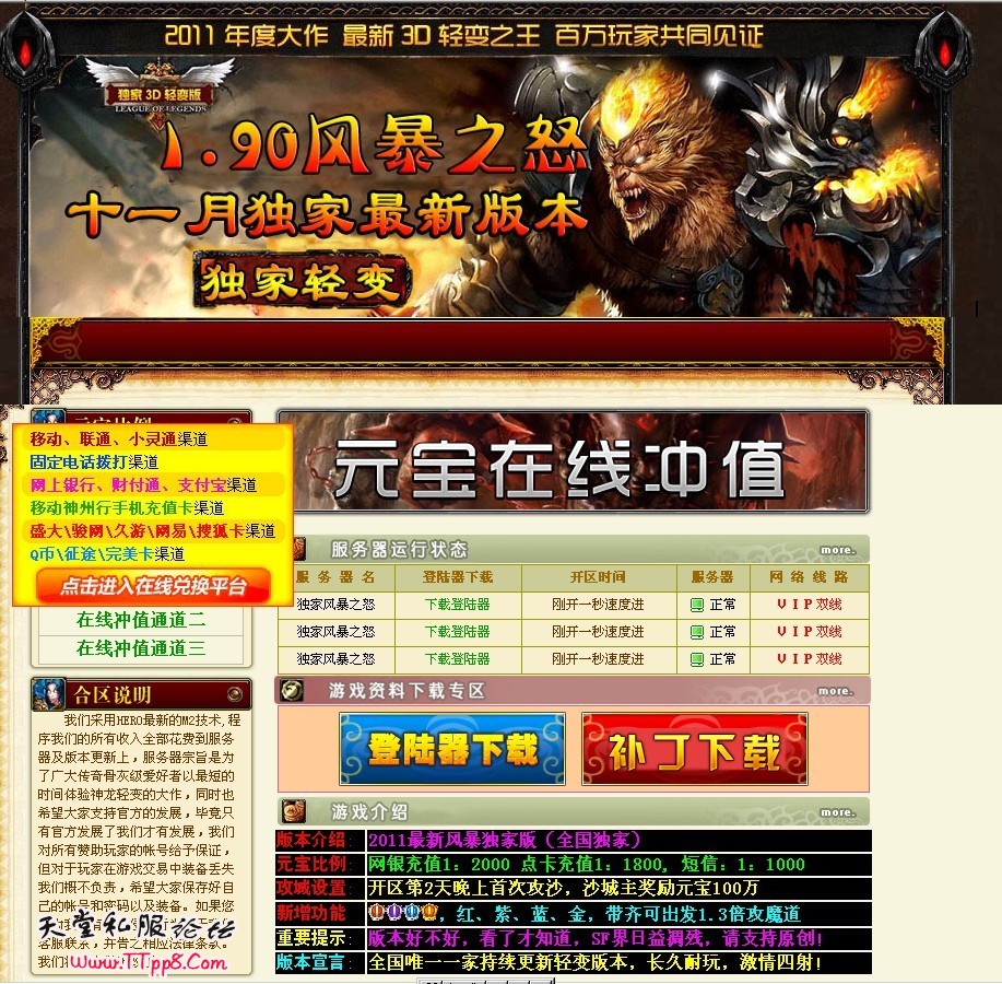 【元宝充值】:元宝冲值比例提高到短信1:10000,点卡1送:80%,网银1送:100%。〓〓〓〓〓