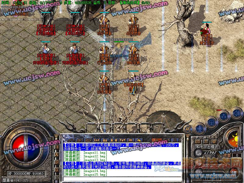 【公告】:行会战场两小时举行一次,可以进去半个小时,每30秒增加100点荣誉值和300万经验,荣誉值可以直接换元宝。