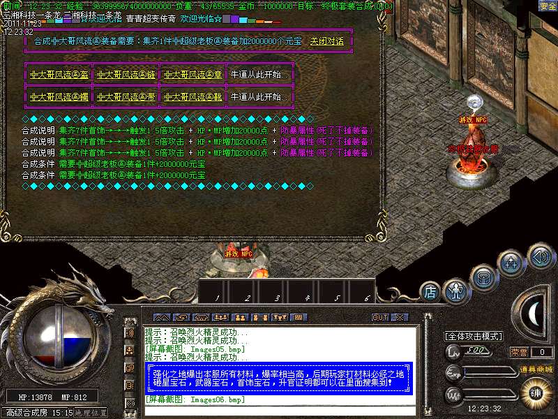 功能:装备合成师,装备回收系统,激情派对,装备锻造,元素使者,转生系统等。。