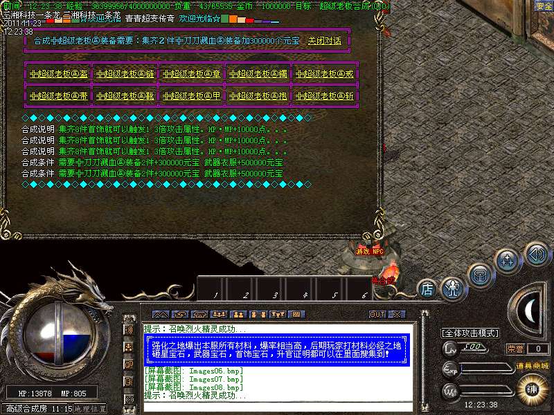功能:装备合成师,装备回收系统,激情派对,装备锻造,元素使者,转生系统等。。