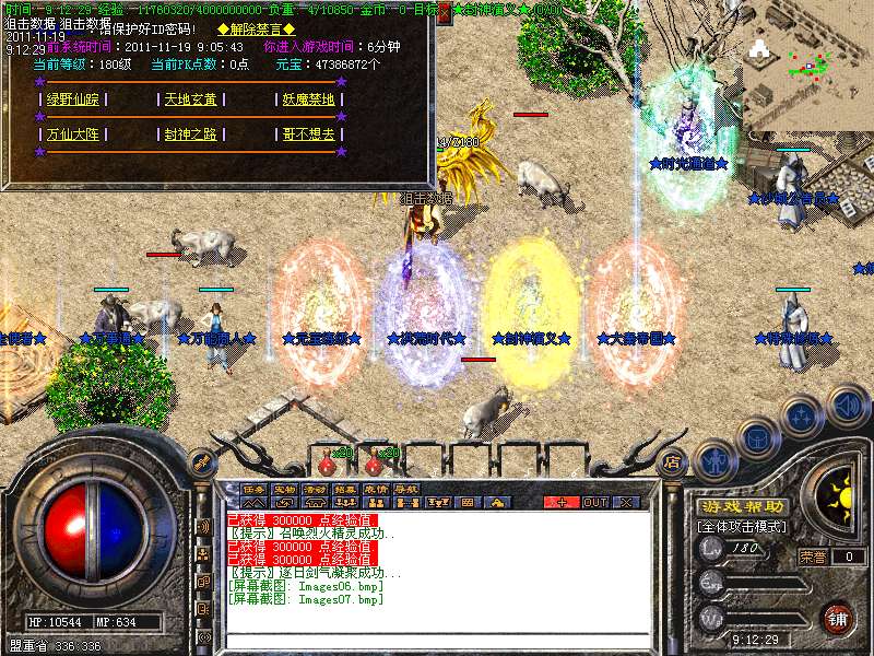 本F道士升到90级召唤守护天使一个、100级二个、120级三个!非常厉害!