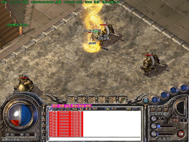 本服最高等级为255级,转生次数为25转,装备随时间而定时更新!!