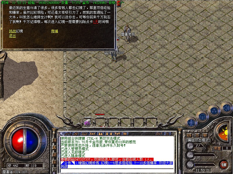 本为复古03年的.有幻境.幻境1-6为双倍经验.7-10为双倍爆率...进入幻境需要1天点卡时间