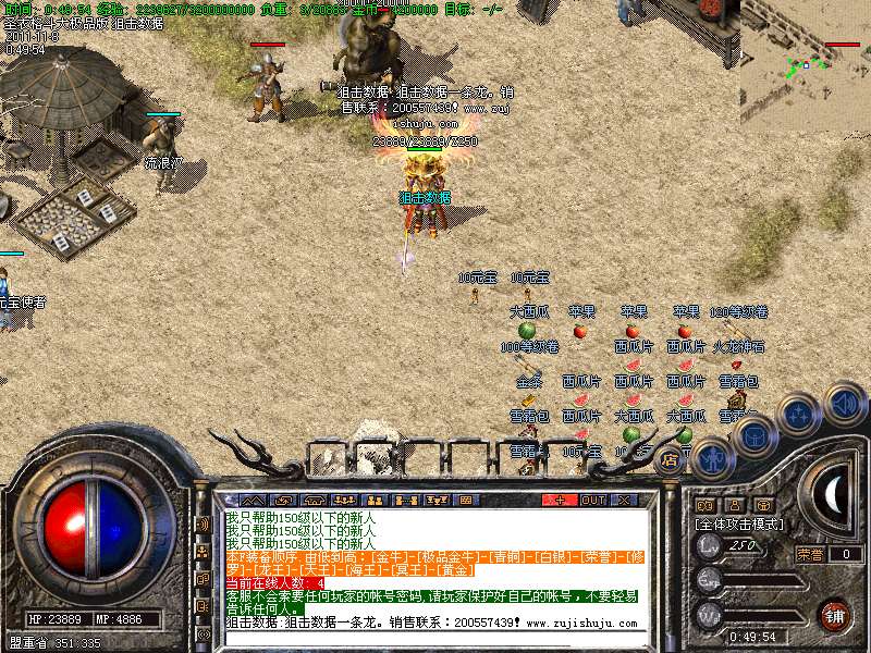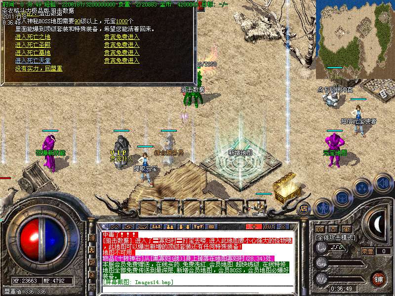 3.[贵宾玩家]:免费进入任何收费地图,每天领取1000元宝津贴,贵宾封号任意取,免费贵宾染色!送黄金倚天和白银圣衣