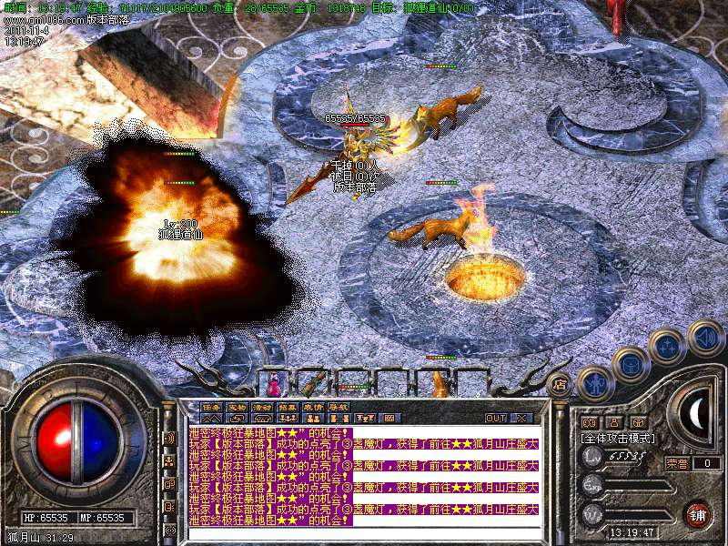 八.【特殊刷新】用魔法神石在土药旁边的魔法结阵可召唤出蚩尤.同时可获得丰富的奖品.--即本服的所有装备都可送出!