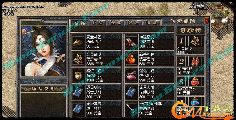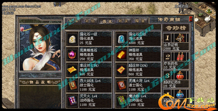 物品可以叠接,强化石精炼石都可以叠加,帮你大量的节约包裹的空间,详细使用方法在土城的宝石说明处查看吧!