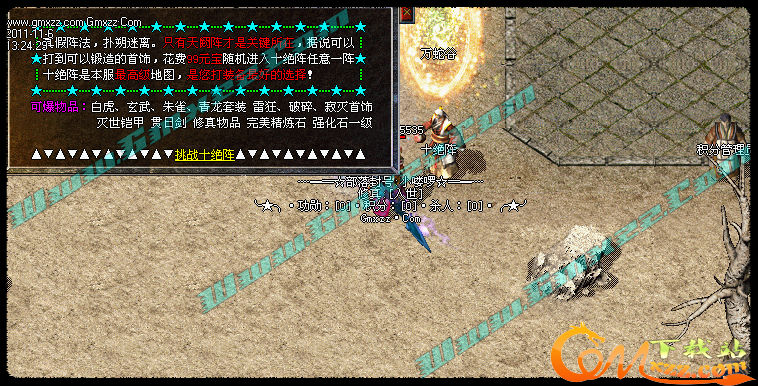 十绝阵,使用99元宝可以随机进入任意一阵,爆率非常之高,不要担心打不过怪,本站怪物的攻击防御并不高,杀死他们只是时间问题!