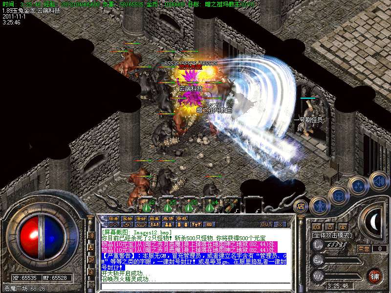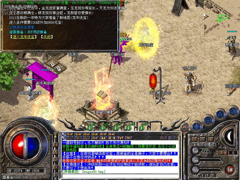 三.【特色活动】每天一次的活动.斩杀任意怪物500只可获得500元宝的奖励.元宝自动增加在身上.注意查收!