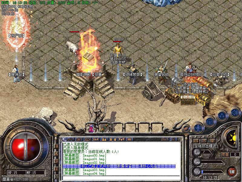 一.【地图介绍】:练级地图为、盘古、石墓、生死之间、幻境三层、霸者大厅、尸魔三层.特别自助刷怪地图恶魔广场为5倍经验*三倍经验石可实现15倍经验