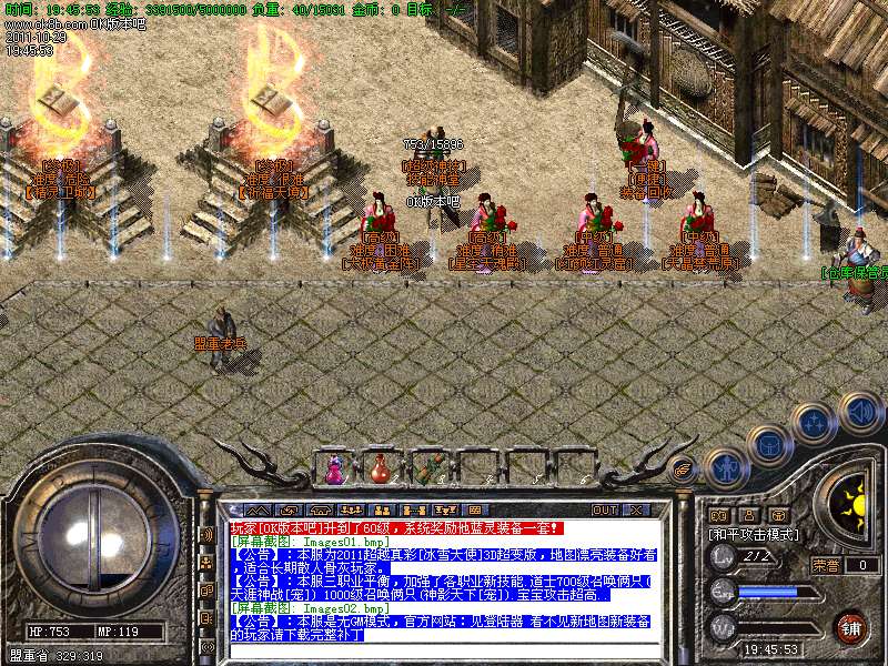 【公告】:行会战场两小时举行一次,可以进去半个小时,每30秒增加100点荣誉值和300万经验,荣誉值可以直接换元宝。